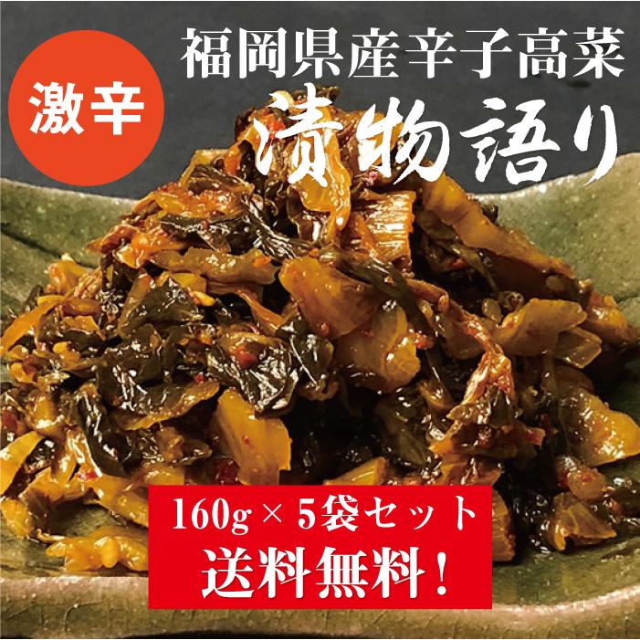 送料無料!【訳あり】イヌイの福岡県産辛子高菜「漬物語り」激辛5袋セット 160g×5袋セット 袋セット おつまみ ごはんのお供 漬物 高菜漬け 辛党【賞味期限2026/5/20】