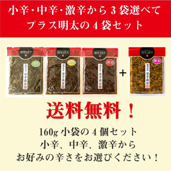 | 名称 | 小辛・中辛・激辛の辛さ選べる3袋プラス明太の4袋セット |
