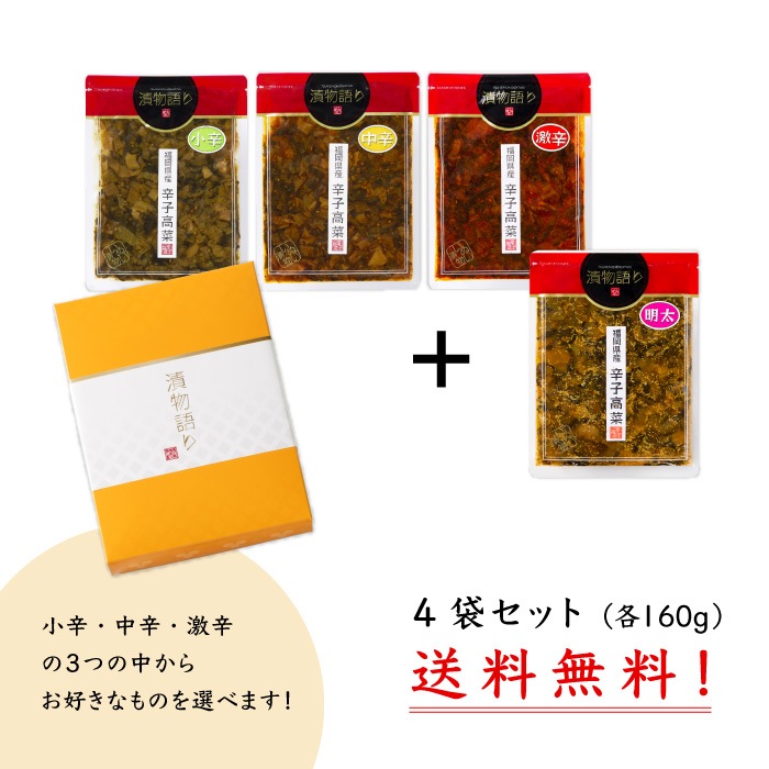 | 名称 | 辛さを選べる辛子高菜160g 4枚ギフトセット |